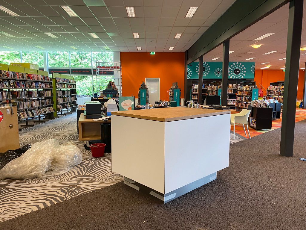 Na een grootscheepse verbouwing is het maandag 23 mei eindelijk zover: Bibliotheek Dokkum is weer geopend. Wegens de verbouwing was de bieb de afgelopen twee weken gesloten, maar komende maandag zijn bezoekers vanaf 13:30 uur van harte welkom om het nieuwe resultaat te bewonderen. Huiskamer van de stad In de volksmond wordt het woord bibliotheek vaak geassocieerd met een plaats voor de uitleen van boeken. Maar Bibliotheek Dokkum is méér dan dat. “Het is voor veel mensen ook een plek om te werken, om te leren, om elkaar te ontmoeten,” vertelt Benice de Vries van OdV Interieurarchitecten, het bedrijf achter de verbouwing en herinrichting van de bibliotheek. “De bieb is een sociale ontmoetingsplek, die voor iedereen toegankelijk moet zijn. Dat willen we met de verbouwing nog meer uitdrukken: de bibliotheek als huiskamer van de stad.” Allerlei nieuwe faciliteiten Natuurlijk kun je gewoon boeken blijven lenen bij de bieb, maar tijdens de verbouwing is vooral hard gewerkt aan allerlei nieuwe faciliteiten. Zo zijn er nu meer studie- en werkplekken, twee nieuwe cursusruimten én een aparte balie voor overheidsvragen. Bibliotheek Dokkum heeft al zo’n informatiepunt digitale overheid, maar de balie zelf is nieuw. Zo wordt het voor degenen met vragen ook duidelijker waar ze moeten zijn. “Als mensen vragen hebben over bijvoorbeeld belastingen, zorgtoeslag, hun rijbewijs of paspoort of met een juridisch probleem zitten, kunnen wij hen aan deze balie ondersteunen en verder helpen,” aldus Froukje Dijkstra, werkzaam als marketingmedewerker bij Bibliotheken Noord Fryslân. Momenteel wordt de laatste hand gelegd aan het vernieuwde leescafé, dat kleiner maar des te gezelliger is geworden. Het gloednieuwe tapijt ligt al op de vloer en het meubilair staat klaar om geplaatst te worden. Froukje is trots: “De bibliotheek is een plek voor iedereen. Om gebruik te maken van alle nieuwe faciliteiten, hoef je geen lid te zijn. Je kunt gewoon binnenwandelen en een plekje uitzoeken om te lezen, te werken of lekker koffie te drinken.” Bibliotheek Dokkum opent haar deuren weer voor bezoekers op maandag 23 mei vanaf 13:30 uur. Voor meer informatie, bezoek de website van Bibliotheken Noord Fryslân, locatie Dokkum.