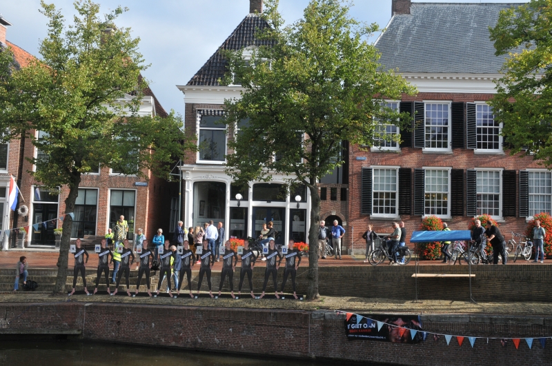 Bij het beroemde Elfstedenkeerpunt in Dokkum verzamelden maandagmorgen in alle vroegte al tientallen mensen vanwege de doorkomst van zwemheld Maarten van der Weijden. In de eerste schema's stond Dokkum maandagmorgen gepland, door een extra rustmoment in de eerste en zwaarste nacht en een lager tempo werd al snel gesproken van een doorkomst na 12.00 uur. Een exacte doorkomsttijd is moeilijk te zeggen. In zijn tweede nacht nam Van der Weijden kort twee keer een kwartier en een keer vijf minuten rust. Verder zwom hij de 45 kilometer tellende hel van het Noorden tussen Dokkum en Franeker door. Iets voor half elf zwom hij onder het iconische bruggetje van Bartlehiem door, dat zwart zag van de mensen die hem aanmoedigden voor de resterende elf kilometer die in een rechte lijn naar Dokkum gaan. Van der Weijden hield even stil om met mensen op de brug te praten en zijn duim op te steken. Afgaand op zijn eerder gehaalde tempo van 4,5 kilometer per uur zou hij om 13.00 uur in Dokkum kunnen zijn. Dat lijkt niet reëel. Voor Bartlehiem viel het tempo van Van der Weijden terug tot 2 tot 2,5 kilometer per uur. Afgaand op die zwemsnelheid komt (na) 15.00 uur ook in beeld als doorkomsttijd. Reëel lijkt ook dat hij Dokkum tussen 14.00 en 15.30 uur kan passeren. Het podiumprogramma op de Zijl rond de doorkomst van Maarten van der Weijden startte in Dokkum wel alvast om 11.00 uur. De aangekondigde sprekers komen eerst aan de beurt, muzikale opluistering blijft doorgaan totdat Maarten het Kleindiep doorkomt. Iedereen is welkom om het programma te volgen en Maarten aan te moedigen! Die aanmoediging is vooral ook nodig op de route buiten Dokkum, langs de Dokkumer EE. Naar verwachting is het rond het Keerpunt in Dokkum bomvol. Maarten liet zelf weten in ieder geval naar Dokkum te zwemmen, dan heeft hij er 170 kilometer opzitten en is de zwemmer in alle 11 de Friese steden geweest, of ie vervolgens zwemmend naar Leeuwarden gaat blijft nog even open. "In eerste instantie gaan we ons stinkende best doen voor Dokkum. Dan hebben we alle Elf steden gehad".