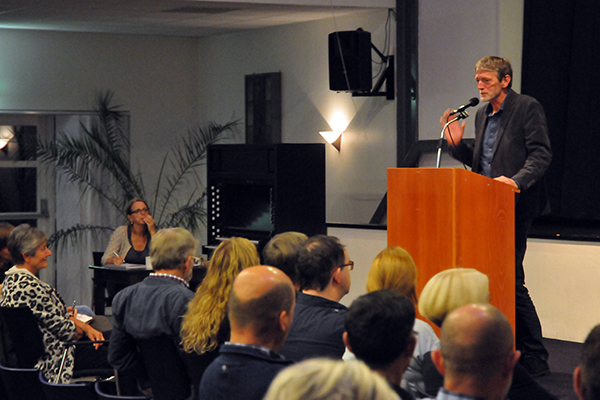 De informatiebijeenkomst over de komst van een tijdelijk AZC naar Dokkum dinsdagavond in De Herberg in Dokkum werd goed bezocht en is rustig verlopen. Zowel voor- als tegenstanders kregen van gespreksleider Gerrit Hofstra het woord en hadden vragen en zorgen over veiligheid, onderwijs en andere zaken. Burgemeester Marga Waanders, wethouder Sicco Boorsma en Aaldrik Hooiveld van het COA gaven antwoord op de vragen. Burgemeester Marga Waanders kreeg het luidste applaus na haar oproep: "dit is het moment om in daad van onze christelijkheid te getuigen". De avond trok enkele honderden bezoekers. Vanaf zomer 2016 mannen uit Syrië, Ethiopië en Eritrea naar Dokkum Na kritische vragen over de herkomst, noodzaak en Godsdienst van de vluchtelingen, antwoordde Hooiveld van het Centraal Orgaan opvang asielzoekers (COA) dat het op dit moment vooral om veelal getrouwde en vaak hoogopgeleide mannen uit Syrië, Eritrea en Ethiopië gaat, waaronder veel christenen. De dagelijkse stroom met vluchtelingen is inmiddels zodanig toegenomen - gemiddeld 3500 per week - dat de wachttijd tot een besluit over een verblijf in Nederland is opgelopen van 12 dagen naar 21 weken. Alle betrokkenen worden eerst uitgebreid aan een screening onderworpen. Vanaf de zomer van 2016 worden aan de Parklaan bij Dokkum ongeveer 600 asielzoekers met een status opgevangen. "Er komen inderdaad mensen met verschillende culturen binnen", aldus Hooiveld. De mannen hopen op gezinshereniging in Nederland, wanneer hun aanvraag is goedgekeurd. Werkgelegenheid voor 80 mensen Het Centraal Orgaan opvang asielzoekers denkt voor ongeveer 80 mensen werk te hebben. Het orgaan probeert ook het regionale bedrijfsleven zo goed mogelijk bij de bouw, het onderhoud en andere zaken te betrekken. Asielzoekers worden ook ingezet om het eigen terrein schoon te houden. De asielzoekers krijgen verder ongeveer 50 euro zakgeld per week, waar ze gemiddeld zo'n 30 euro besteden bij de lokale middenstand. De gemeente Dongeradeel en het COA laten in een bestuursovereenkomst opnemen dat het AZC in Dokkum maximaal 10 jaar op de huidige locatie kan blijven. Er wordt in eerste instantie uitgegaan van 5 jaar. Na een evaluatie kan daarna worden besloten of er nog maximaal 5 jaar langer een AZC bij de stad kan blijven. Veiligheid Ongeveer de helft van de vragen uit de zaal gingen over de veiligheid. "Hoe zit het met opvoeding? Sommige mannen kunnen zich misschien niet inhouden", aldus een van de vragenstellers. Hoewel de bestuurders in eerste instantie nog te veel een positief verhaal vertelden, werden incidenten uit het verleden niet genegeerd. "Overal zit wel een rotte appel tussen", aldus Waanders. Iedere asielzoeker krijgt vanaf de eerste dag les in normen en waarden, door naast Nederlandse les ook de training Kennis Nederlandse Samenleving (KNS) te geven. Toch kregen de aanwezige tegenstanders de handen minder vaak op elkaar dan de voorstanders: "De jongeren die met brandbommen naar het AZC gooiden kwamen overigens gewoon hier vandaan", aldus een van de aanwezigen. Waanders: verbinding zoeken De aanwezigen in de zaal en burgemeester Marga Waanders riepen ook op tot verbinding. "Het zoeken van een verbinding met de asielzoekers is noodzakelijk. Dat zal ook zo zijn als het minder plezierig is. Dat poetsen we ook niet weg". Toch stonden de positieve ervaringen met het AZC in het verleden bij de bestuurders centraal. "Daar heb ik een goed gevoel van gekregen. Laten we niet met zijn allen gaan zitten doemdenken, maar kijken naar de redelijke schaal van Dongeradeel. Als we kijken naar de wereldschaal, dan weet ik ook niet hoe het komt", aldus burgemeester Waanders. Voorgenomen besluit Het college van Burgemeester en Wethouders had direct omwonenden, een aantal maatschappelijke instellingen en de gemeenteraad al geïnformeerd over het voorlopige besluit. Na de informatiebijeenkomst vinden er nog gesprekken plaats met diverse betrokken en vindt er een consultatie in de gemeenteraad plaats. Het college neemt hierna een definitief besluit. Lees ook: Mogelijk opnieuw een tijdelijk AZC in Dokkum