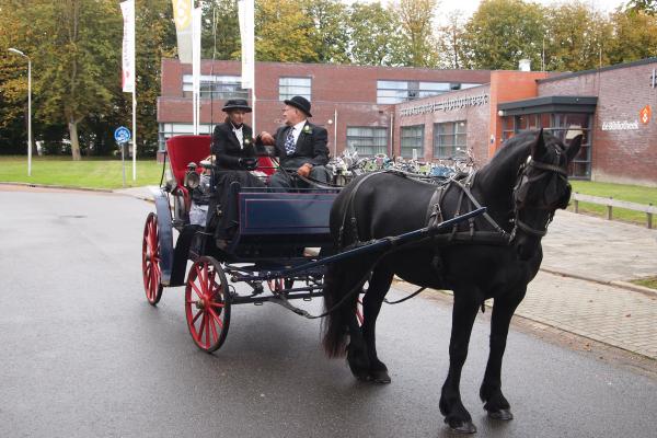 Luid briesend draven veertien, veelal zwarte, elegante paarden voorbij op de Eelaan in Dokkum. Aangemoedigd door supporters zijn ze, samen met hun berijder, vastbesloten om Fries kampioen te worden. Kampioen in het ringsteken welteverstaan. Ze strijden om de Gouden Swipe en de eresjerp voor beste ringsteekster. Het is 12 uur als alle deelnemers zich verzamelen op het Kalkhûsplein om hun rijtuigen in te spannen. Een uur later rijden de veertien combinaties richting de Eelaan, door de historische binnenstad van Dokkum. Het is een bonte stoet. Vooraan twee fietsers, daarachter de veertien paarden en wagens. Op historische Friese sjezen of op andere rijtuigen, maar altijd in traditionele kledij. Een rode oldtimer tractor sluit de parade af. Zij hebben de schone taak om alles wat de paarden achterlaten op te ruimen. Ook staat er jury langs de kant van de weg. Er zijn namelijk meer prijzen te winnen. Voor het schoonste geheel. Een voor de authentieke rijtuigen en een voor de Friese sjezen. Eenmaal op de Eelaan aangekomen mogen ze eerst een oefenronde doen, alvorens het echte werk begint. Het is de bedoeling dat de combinaties een parcours afleggen waarbij de ringsteekster alle ringen probeert mee te pikken. Dit geheel mag echter niet te lang duren, dan volgen strafpunten. Ze doen dit in zes rondes. Na die zes ronden was het Sjerp de Jong die de Gouden Swipe in de wacht sleepte en zich daarmee tot Fries kampioen ringsteken kroonde. Bekijk de volledige uitslag hier.