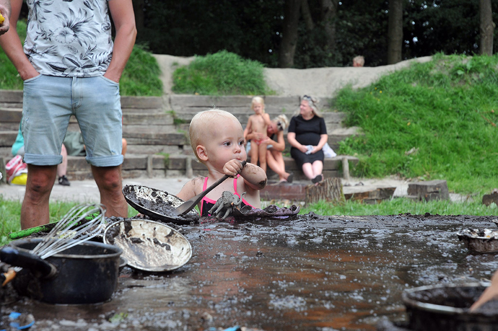Verplicht vies worden! Dat was vanmiddag het motto op het terrein van scoutingclub De Granaet, want daar stond de middag geheel in het teken van modder. Voor de derde keer op rij werd daar door Marianne Kraamer en Elly Dijk het Modderfeest georganiseerd, waar kinderen van 0 t/m 12 jaar zich heerlijk konden uitleven in de modder. Van moddersoep tot modderbad Er was weer van alles te beleven op het Modderfeest; zo konden de kinderen moddersoep maken, een modderbad nemen, speciale modderkunst maken, buikschuiven op een modderbaan en nog veel meer. Het terrein was dit jaar iets groter en uitgebreid met een extra modderbaan, een modderbank en andere extra's. Daardoor leek het misschien wat rustiger, maar de opkomst was ook dit jaar prima.