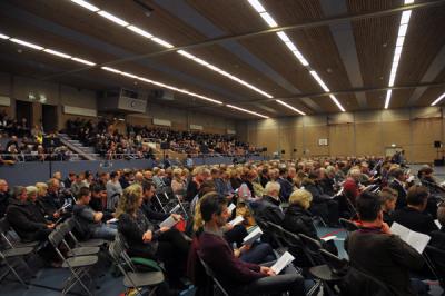 Honderden mensen verzamelden zich zondagavond in sporthal de Doelstien in Dokkum voor de traditionele volkskerstzang. Door de interkerkelijke evangelisatiecommissie van Dokkum werd deze zondagavond een muzikale avond georganiseerd. Naast de samenzang van diverse bekende kerstnummers, bracht ook mannenkoor "Pro Rege", onder leiding van dirigent Dirk Norbruis enkele nummers ten gehore. De muzikale begeleiding kwam van Christelijke Muziekvereniging "Oranje" te Dokkum, onder leiding van dirigent Gerbren Dijkstra.