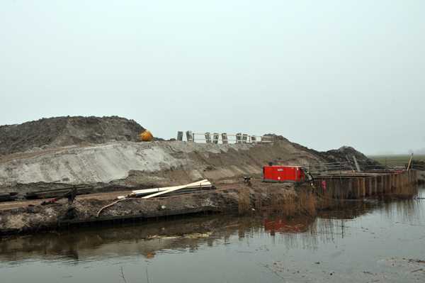 De werkzaamheden aan het nieuwe viaduct bij Dokkum liggen nog steeds op schema. Dat laten de bouwbedrijven en het projectbureau De Centrale As weten. Er wordt hard gewerkt aan de fundering van de tussenpijler van het viaduct. De Trekweg was om die reden van 29 februari tot en met 4 maart aanstaande gesloten. De landhoofden zijn toen geplaatst. Op 13 juni is de Trekweg opnieuw afgesloten, dan worden de liggers van het viaduct geplaatst. In de zomermaanden wordt gestart met het asfalteren van de weg. De aannemerscombinatie Jansma, Roelofs en van Spijker bouwt het deel van de nieuwe snelweg vanaf Dokkum, dat door de aannemers ‘Het Slutstik’ genoemd. Voor een bedrag van 6,7 miljoen euro wordt het contract Noord 1 uitgevoerd. Het gaat om het deel dat bij Dokkum komt te liggen tussen de nog aan te leggen rotonde ten noordoosten van Dokkum tot aan de turborotonde ten zuidoosten van Dokkum, die inmiddels in gebruik is. Het contract Noord 1 was het laatste wegencontract van De Centrale As dat aanbesteed werd. De weg wordt hier, in tegenstelling tot de rest van de noord-zuidverbinding, enkelbaans als 100 km/u-weg aangelegd. Lees ook: Viaduct aan rand van Dokkum gebouwd