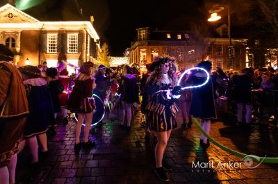 Dit jaar kon de intocht alleen door kon gaan dankzij de brede steun van ondernemers, inwoners, diverse stichtingen en de gemeente. Met gezamenlijke inzet en financiële bijdragen kwam het benodigde budget rond, waardoor de vernieuwde intocht definitief door kon gaan. Vandaag was die betrokkenheid zichtbaar in de stad: veel publiek langs de route, enthousiaste vrijwilligers en een warme, gemoedelijke sfeer tijdens de intocht en de show op de Markt. De eerste avondintocht in deze vorm bleek een succes. De combinatie van lichtjes, blije kinderen, muziek en de levendige route door de binnenstad gaf Dokkum een feestelijke start van de sinterklaasperiode. Een magisch moment dat smaakt naar meer.