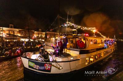 Het voorprogramma startte om 17.00 uur bij het Grootdiep, waar muziek, lichtjes en enthousiasme het publiek alvast opwarmden. Even later meerde de stoomboot aan bij De Dijk. Door de vallende schemer veranderde de binnenstad langzaam in een decor van lichtjes en lampions, die de optocht een bijna sprookjesachtige uitstraling gaven. Sinterklaas en zijn Pieten trokken daarna via de historische binnenstad naar de Markt, waar een interactieve show volgde. De keuze voor een later tijdstip gaf de intocht een verrassende, warme sfeer die goed aansloeg bij bezoekers.